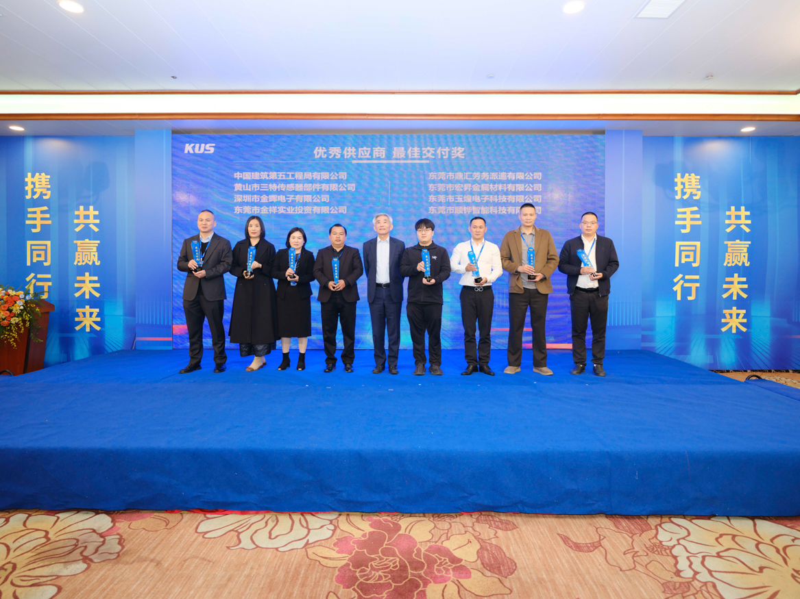 大会现场,来自KUS集团的全球供应链管理处副总向红梅、市场处总经理李晓翔、研发处总经理梅红成、新能源产品处总经理阙衍升先后作重要工作报告;来自深圳清祺电子有限公司总经理严治刚、中建五局第三建设有限公司执行总经理蔡志立、华宝新能源供应链副总钱启杰先生等作为优秀供应商代表,受邀作精彩分享。