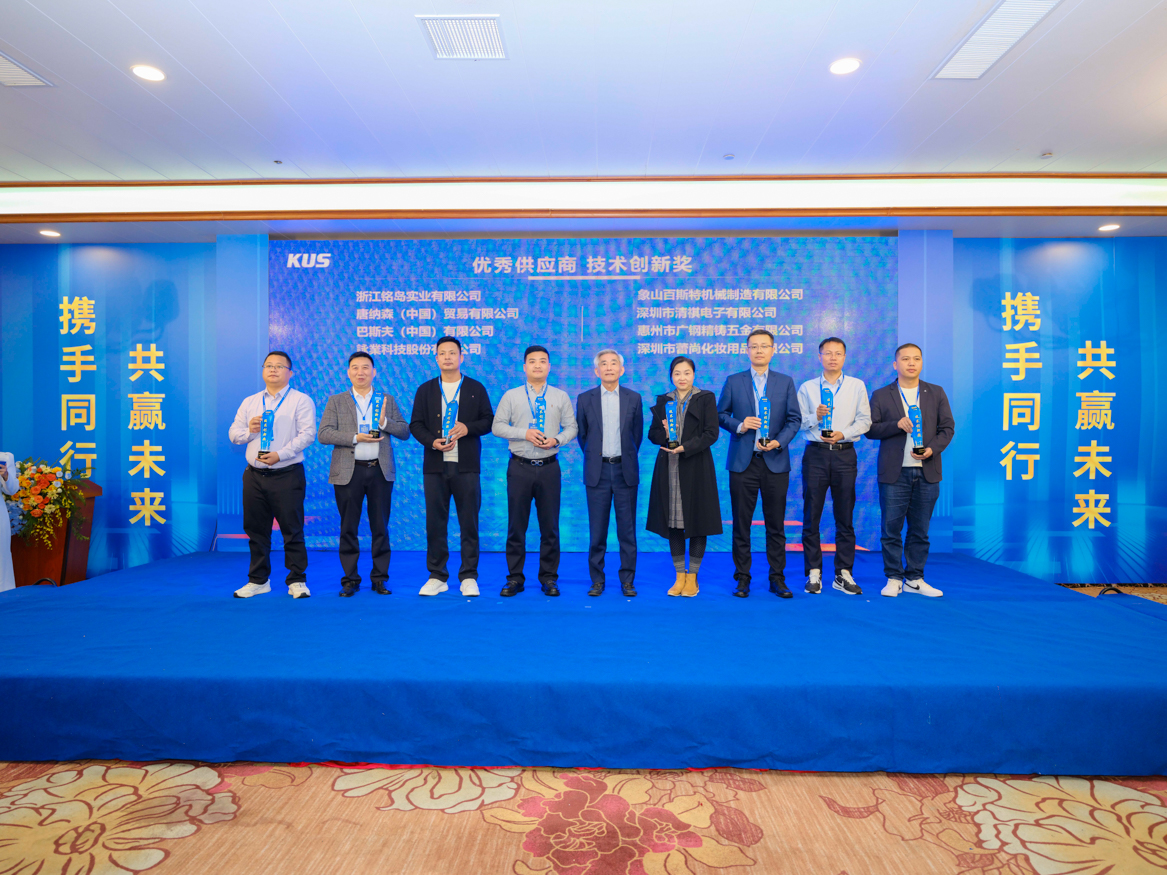 大会现场,来自KUS集团的全球供应链管理处副总向红梅、市场处总经理李晓翔、研发处总经理梅红成、新能源产品处总经理阙衍升先后作重要工作报告;来自深圳清祺电子有限公司总经理严治刚、中建五局第三建设有限公司执行总经理蔡志立、华宝新能源供应链副总钱启杰先生等作为优秀供应商代表,受邀作精彩分享。